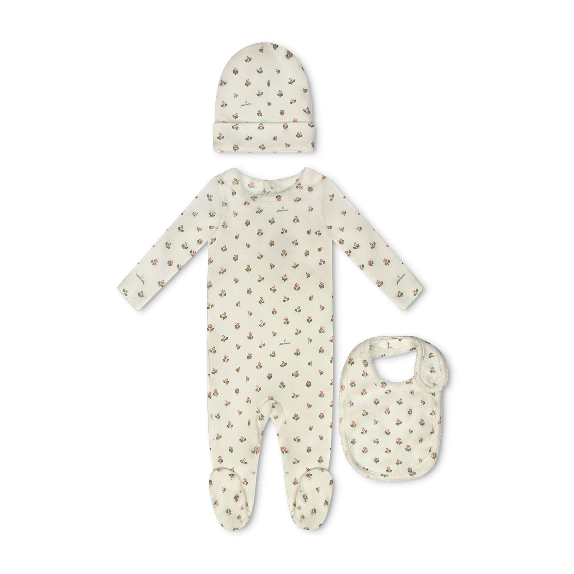 Floral Footie + Beanie + Bib- Pink