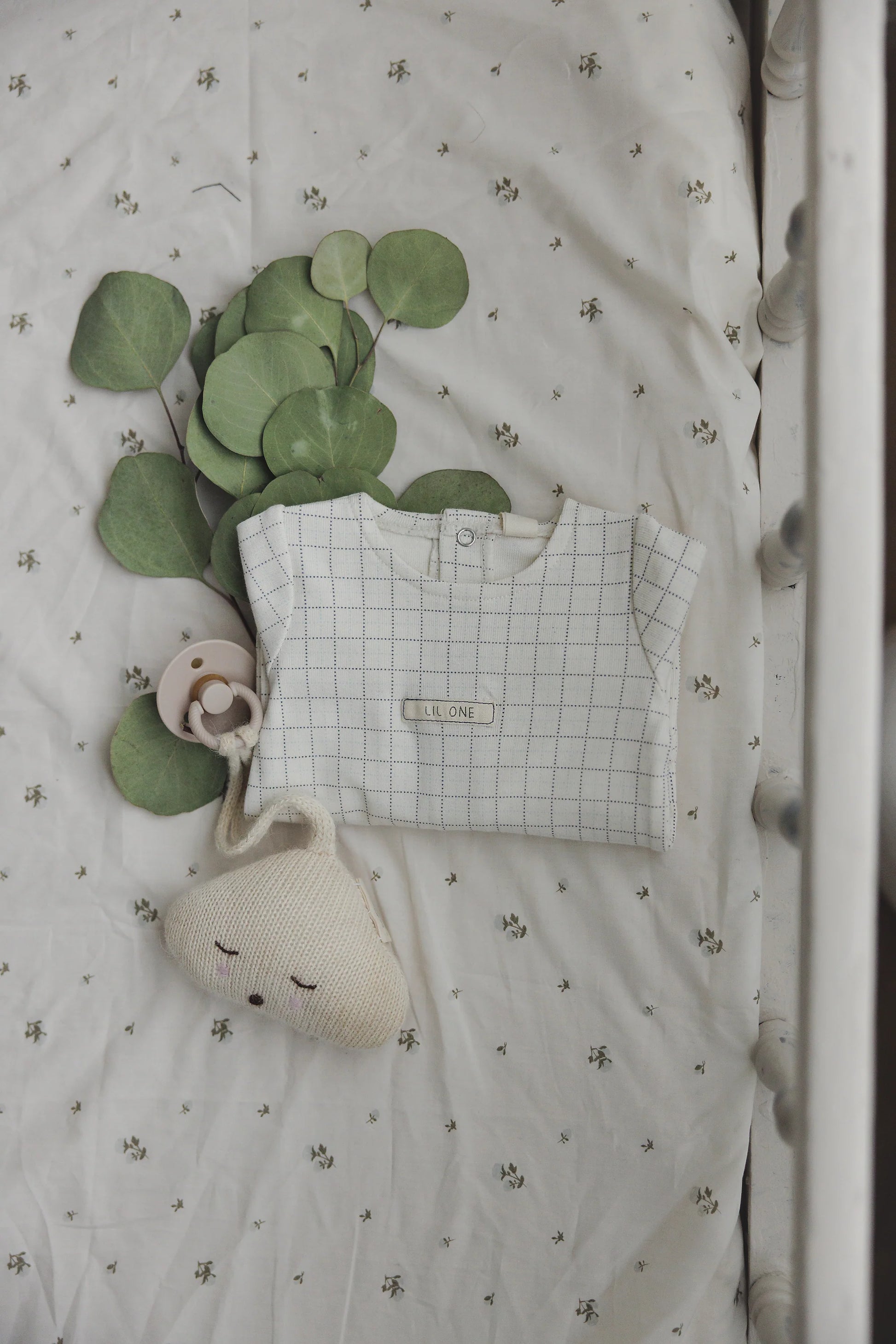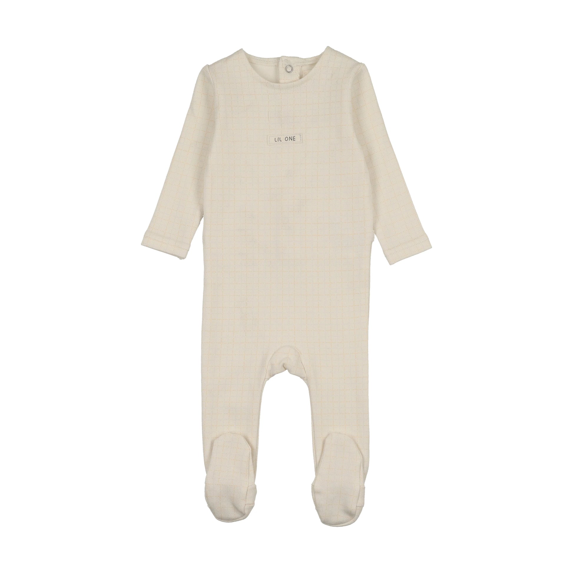 Grid Print Footie Cream/Blue