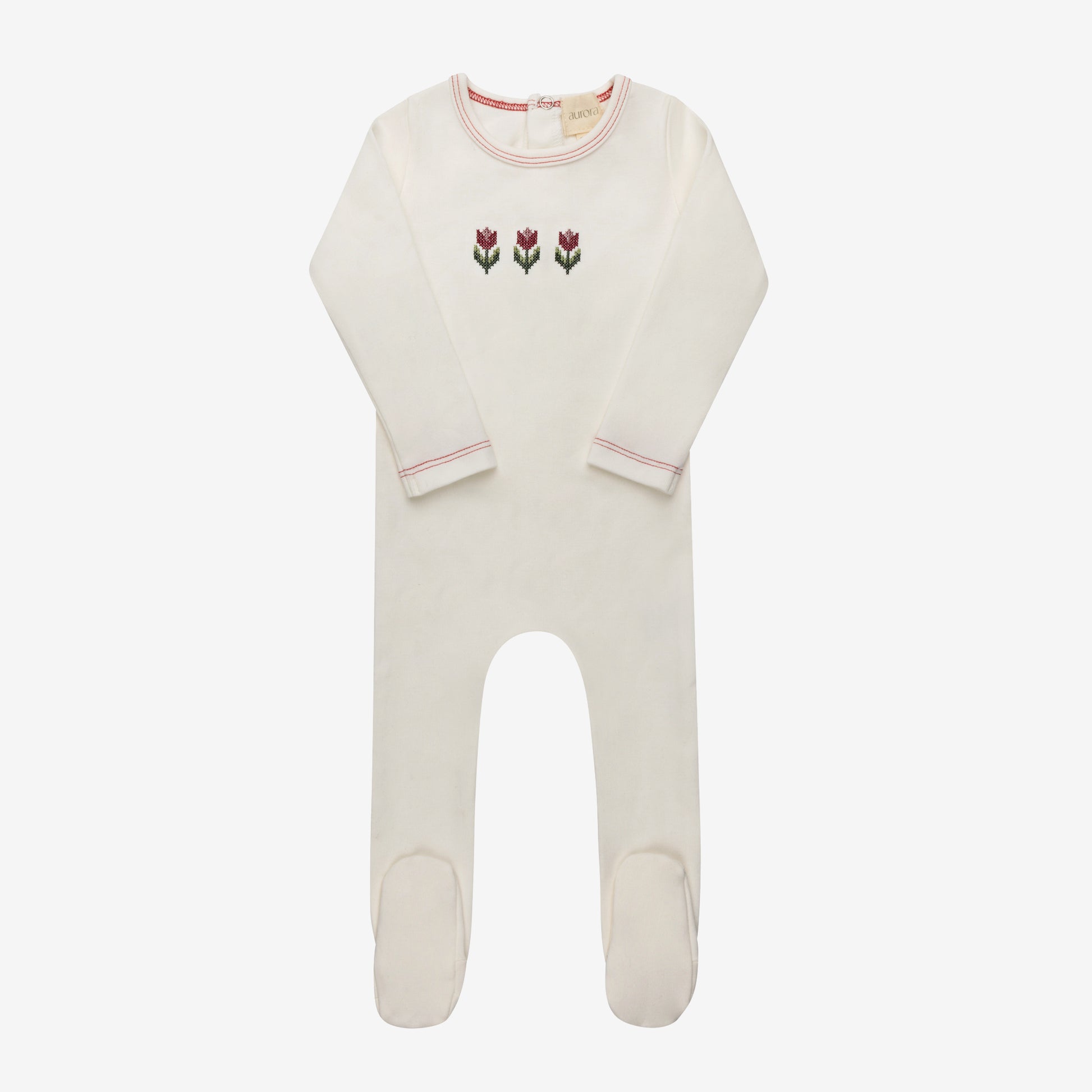 Ivory/Pink Cross-stitch Tulip Footie
