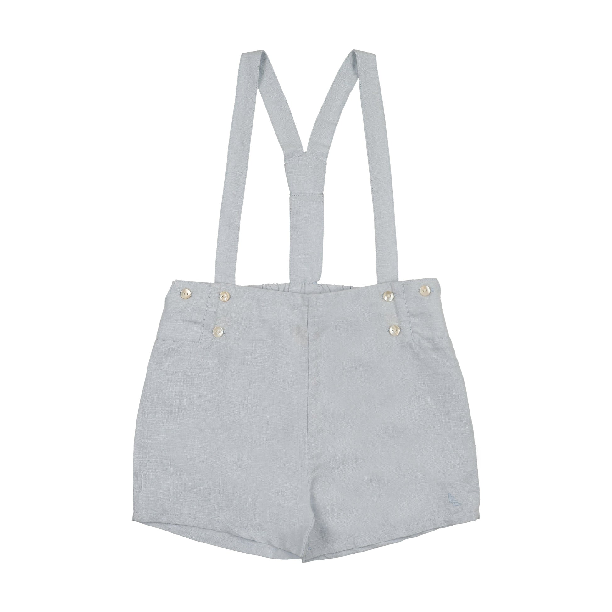 Linen Suspender Shorts- Clear Blue