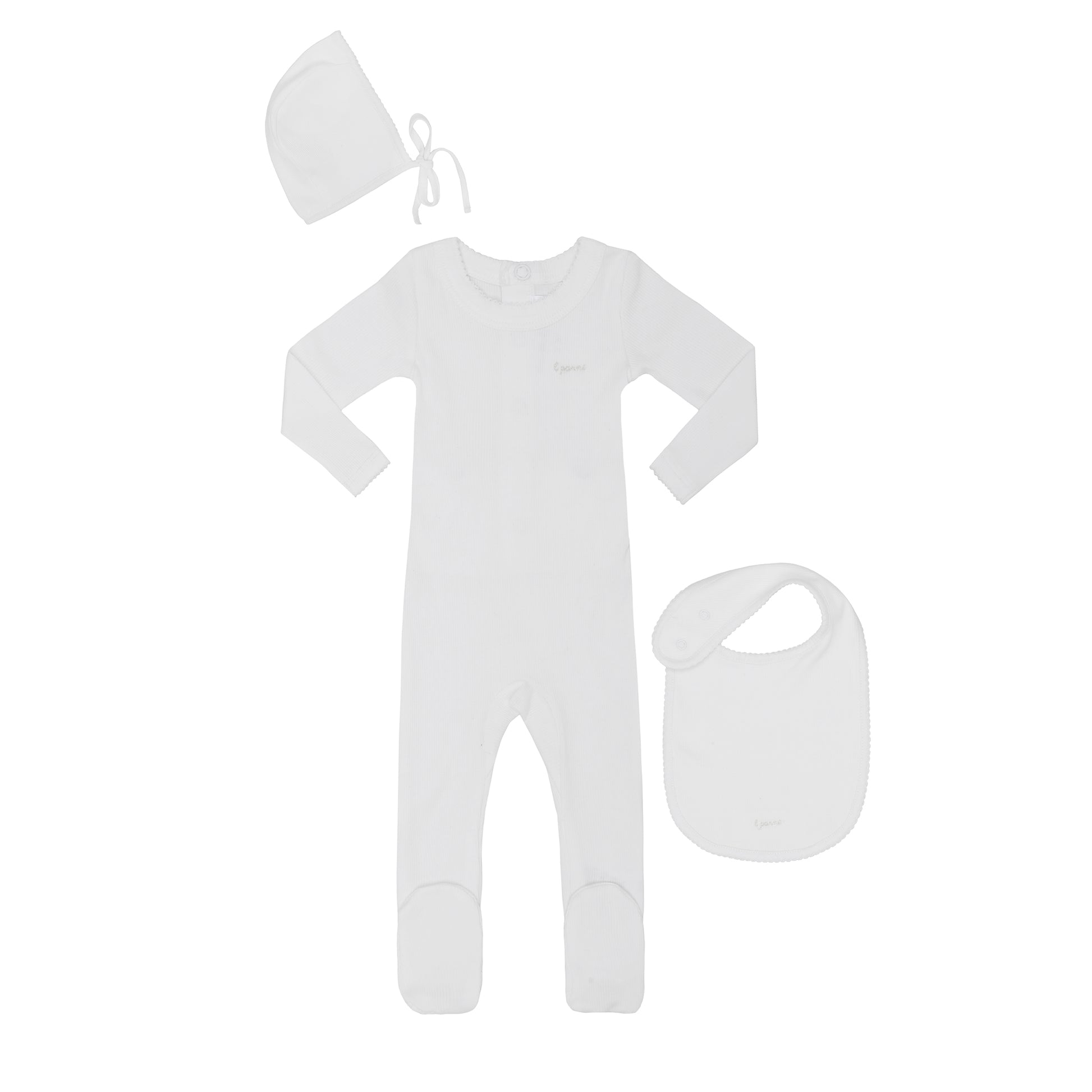 Ribbed Ivory Pico Stretchy + bib- Gift Box